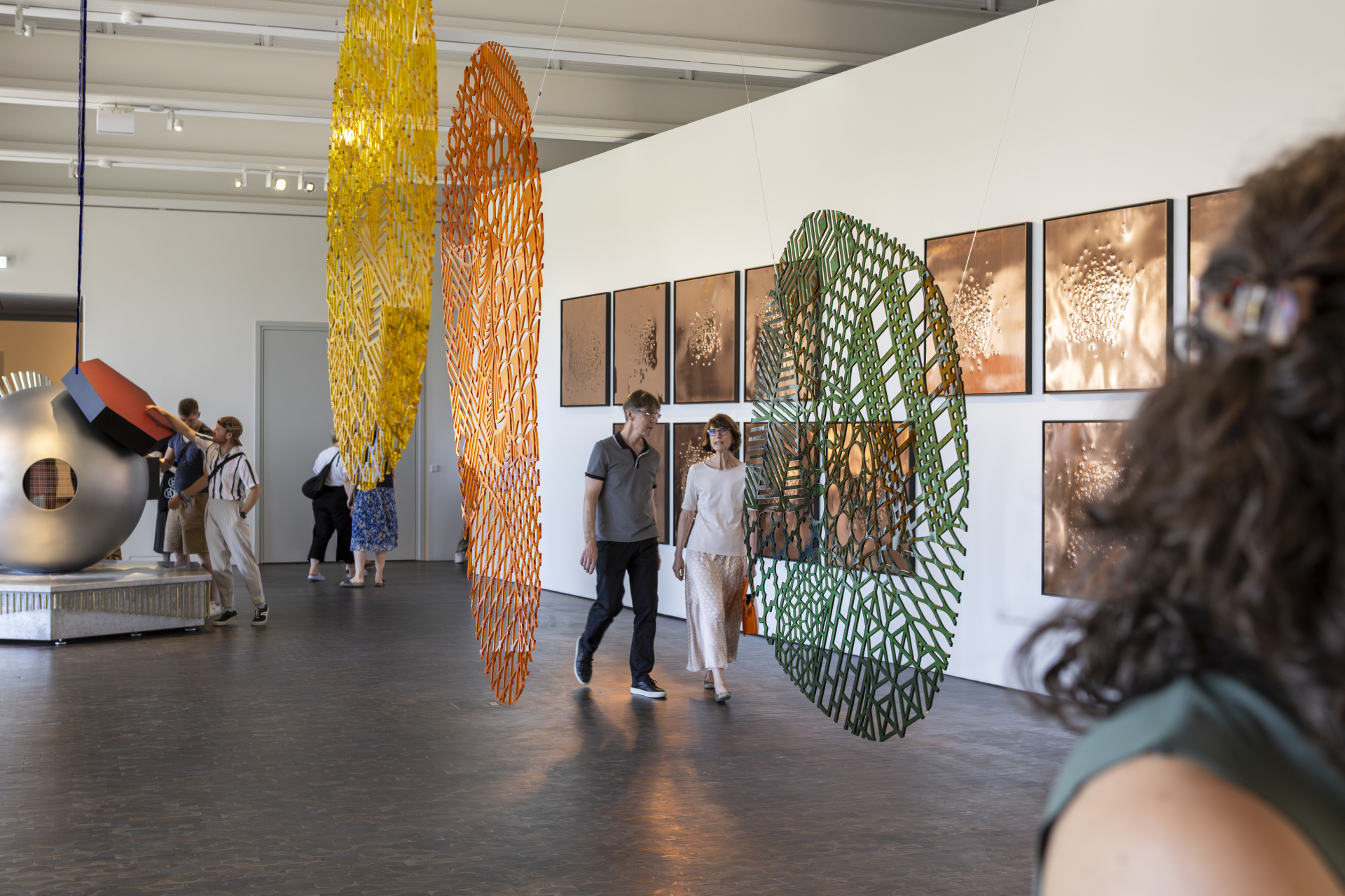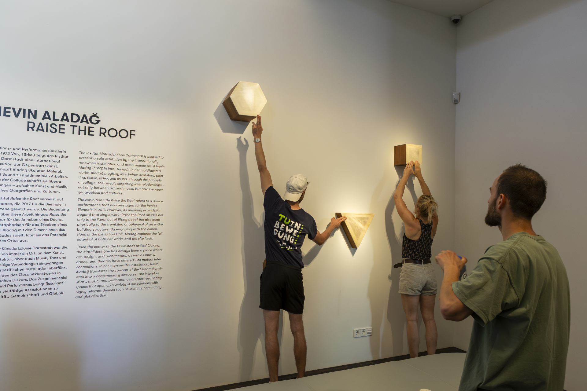 From June 29, 2025 to February 1, 2026, the Institut Mathildenhöhe Darmstadt will be presenting a solo exhibition of the internationally renowned installation and performance artist Nevin Aladağ (*1972 Van, Turkey, lives and works in Berlin). In her multifaceted works, Aladağ playfully intertwines artistic forms of expression such as sculpture, painting, textiles, video and sound. By experimenting with form, material and sound, the artist activates a new perceptual experience. For the exhibition at Mathildenhöhe Darmstadt, Aladağ has created a site-specific installation that explores the boundaries of genres, the human body and space. The interplay of visual art, music and performance creates resonance spaces that open up a variety of associations on themes such as identity, community and globalization.