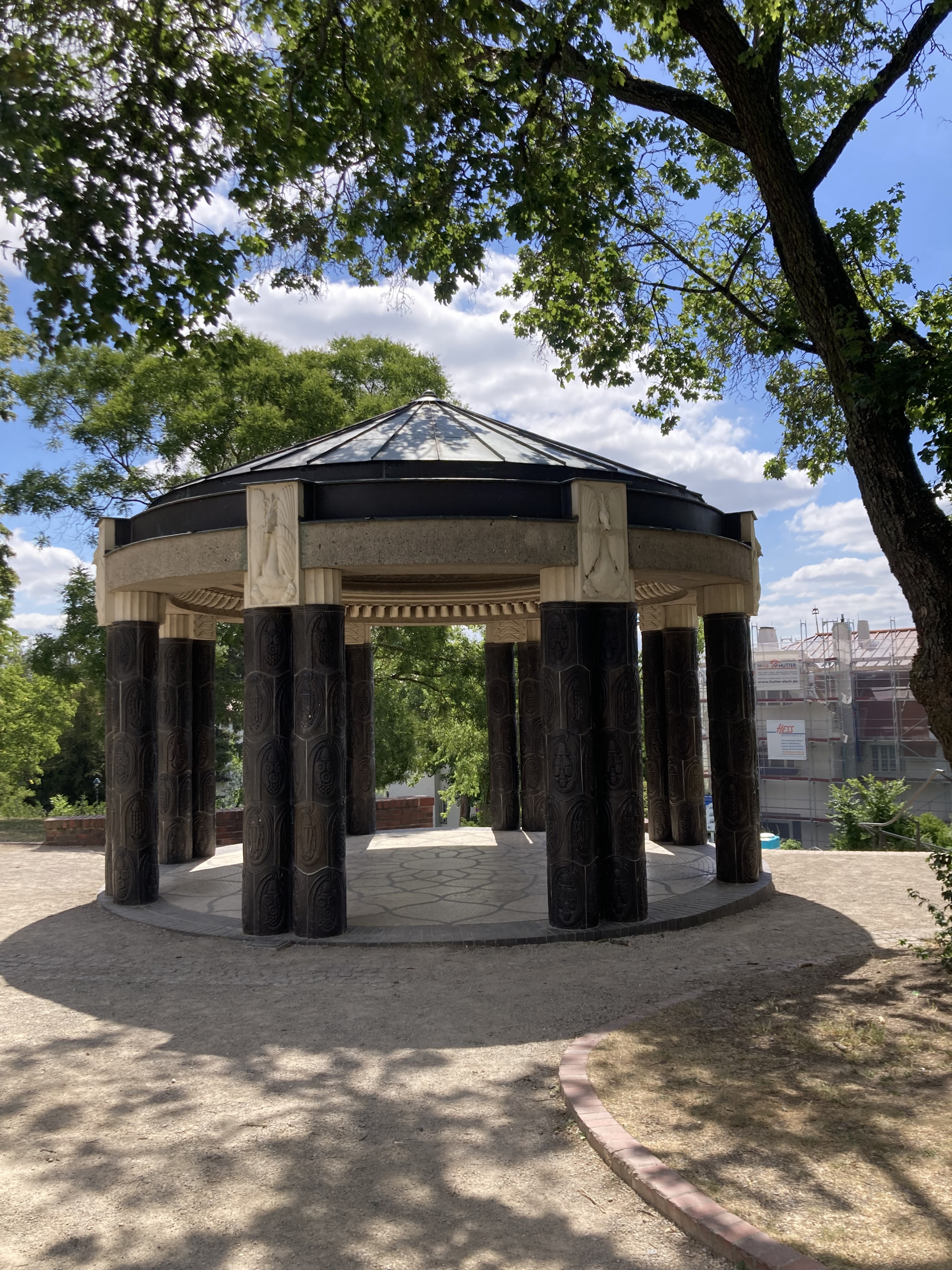 Am südlichen Hang der Mathildenhöhe zwischen „Ernst Ludwig-Haus“ und „Russischer Kapelle“ führt der Christiansenweg als Treppe hinauf zum 1914 errichteten Gartenpavillon. Albin Müller plante ihn als Teil der für die Ausstellung der Künstlerkolonie 1914 gestalteten Außenanlagen.